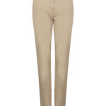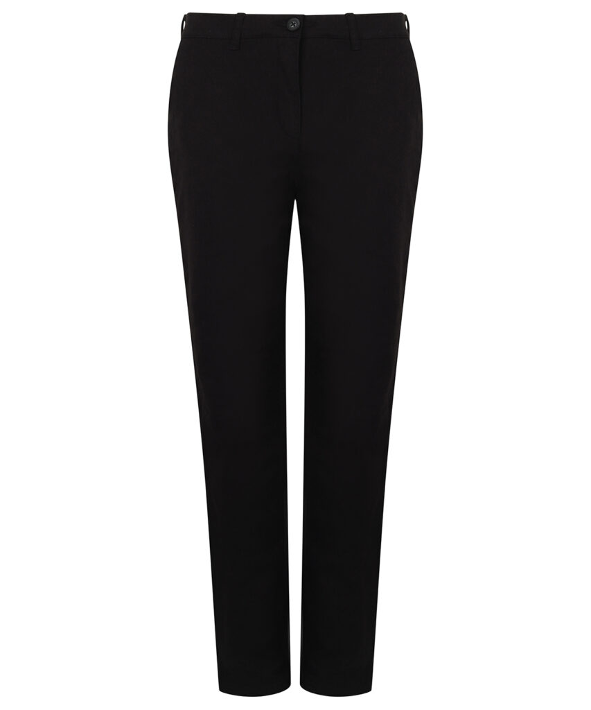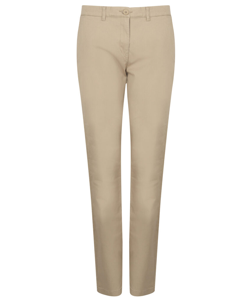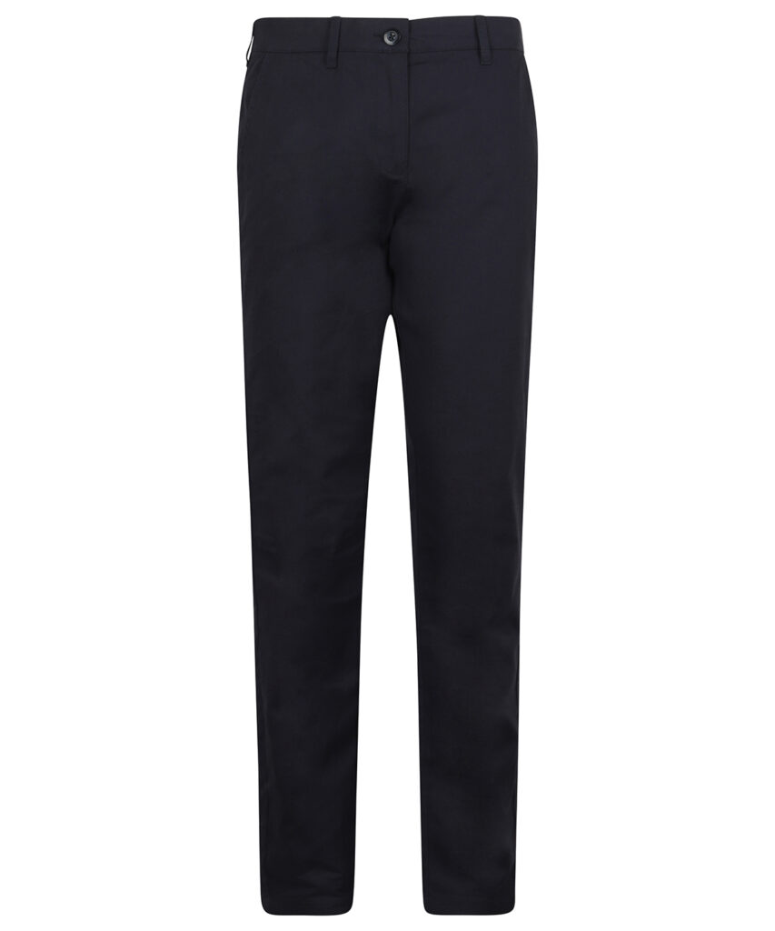 Women’s slim fitting chino with added stretch for comfort and ease of movement. Includes YKK front zipper, belt loops, slanted side pockets, two single jet back pockets, back darts for added fit and DTM buttons. BSCI certified.