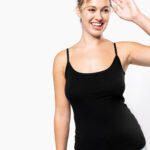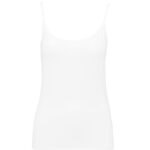 95% cotton / 5% elastane. Jersey knit fabric in combed cotton. Fine straps and feminine fit. Piping at the neckline and twin needle finish at hem. Certified STANDARD 100 by OEKO-TEXN CQ1007/7, IFTH.