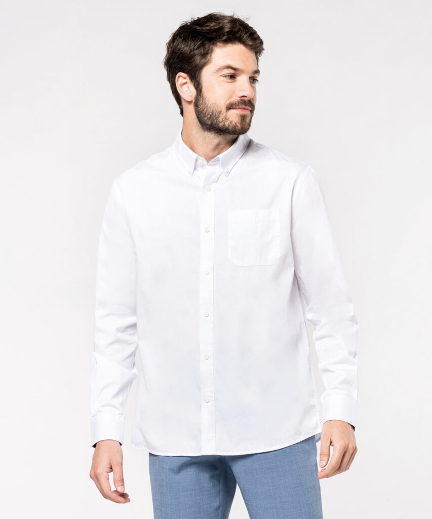 Button-down collar. Matching buttons. Chest pocket on left side. Contrast Oxford silver inner collar stand and cuffs. Back with 2 side pleats and lined yoke. Felled seam finish. BSCI certified. Oeko-Tex certified. SEDEX certified. WRAP certified.