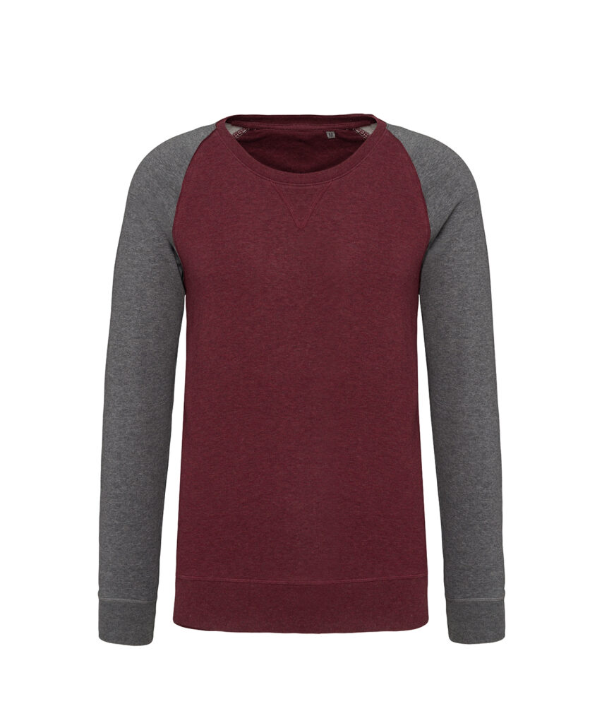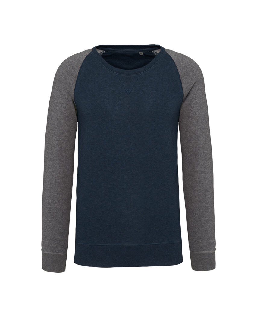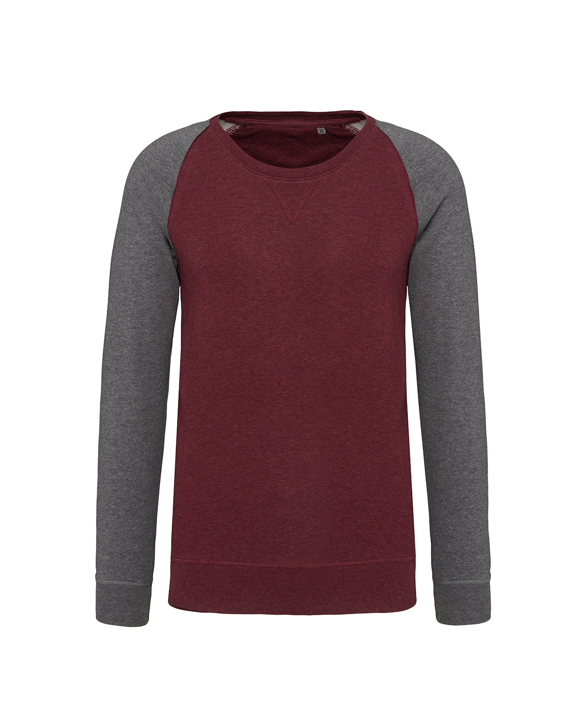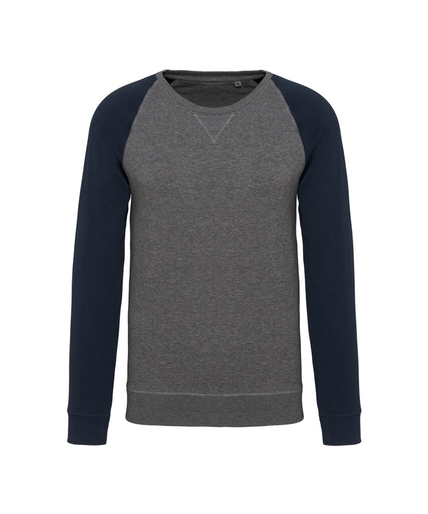 Men’s two-tone organic crew neck raglan sleeve sweatshirt