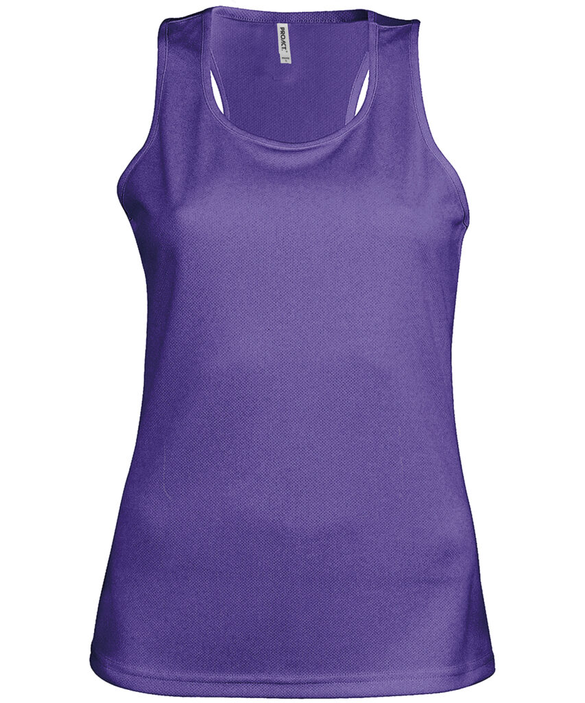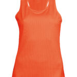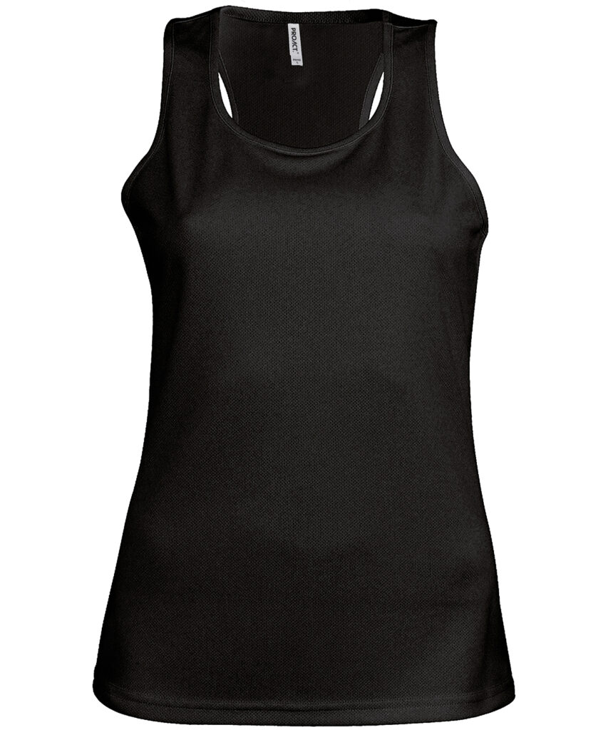 100% Polyester. Quick drying Lightweight fabric. Racer back style. Bound neck and armholes. Twin needle finishing. BSCI certified. Oeko-Tex certified.