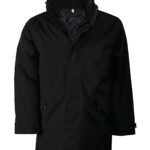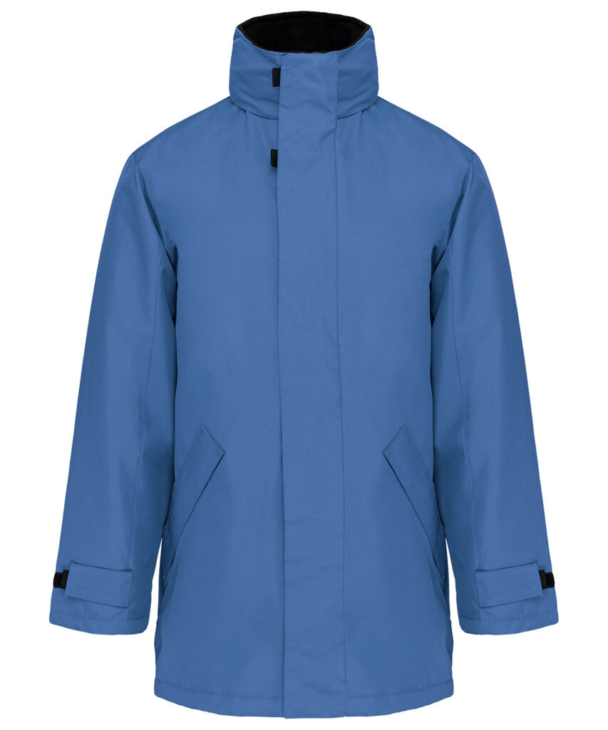100% polyester Oxford outer – quilted polyester padding and lining. Zip fastening with tear release fastening and concealed press studs. 2 zipped outer pockets. 2 inside pockets (1 mobile phone pocket). Concealed hood. Fleece-lined collar. Zip access for decoration.
