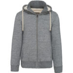 2 piped front pockets. Metal zip fastening. 4×4 ribbed neck, hood edge, cuffs and hem. 2 invisible zippers on left chest and left seam for decoration access. This product has been specially treated and appears intentionally aged. This manufacturing process results in colour variations between products and makes each piece unique. BSCI certified. Oeko-Tex certified.