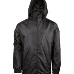 100% polyester. Concealed hood with tear release fastening tab. 2 front zipped pockets. Drawstring at bottom. Elasticated cuffs. Packs/zips into front pocket. Full front zip. BSCI certified. SEDEX certified.