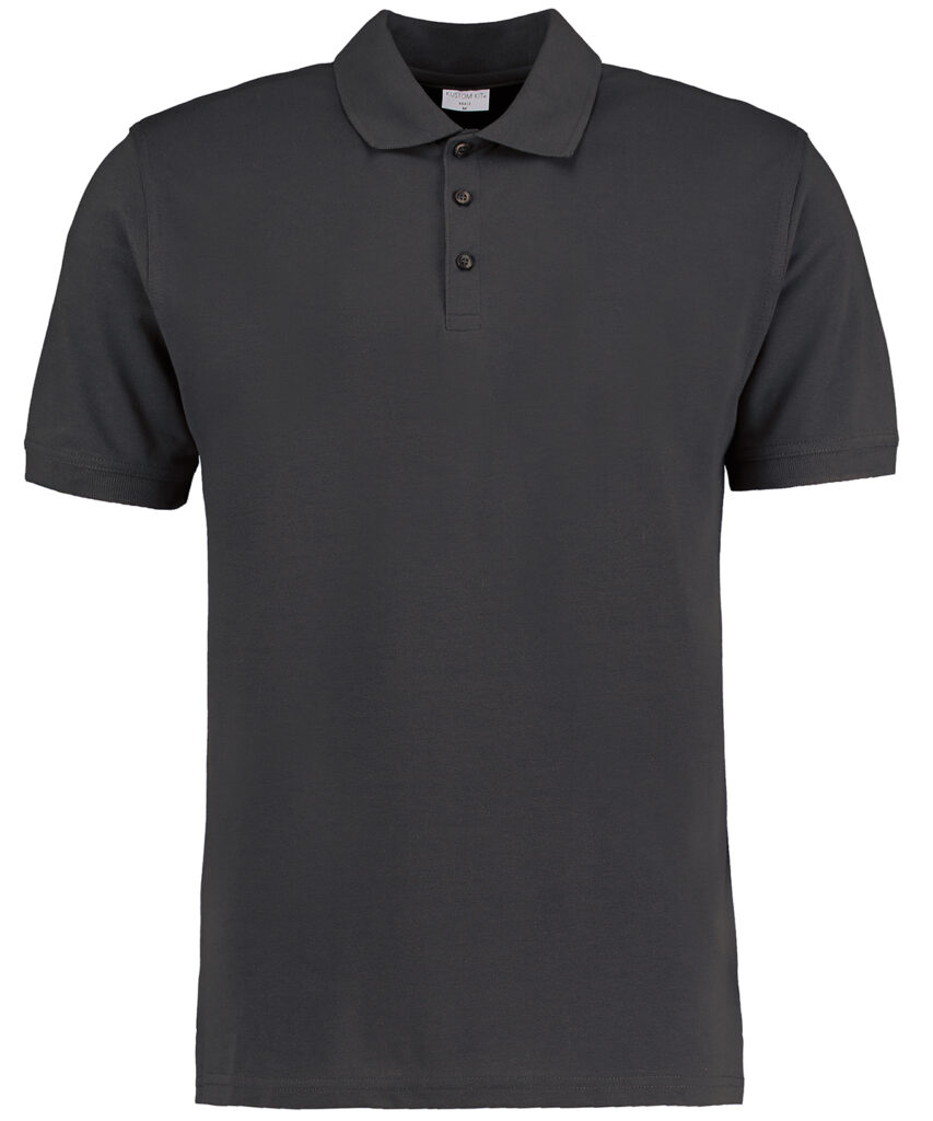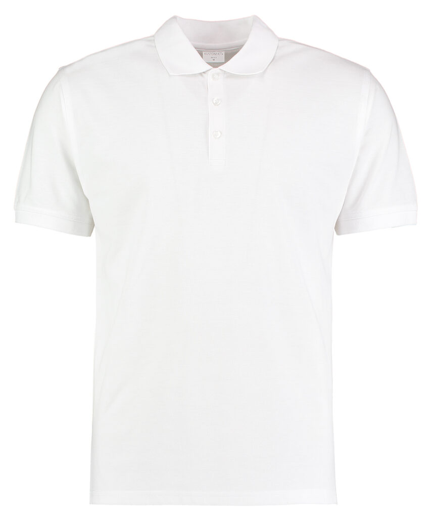 1×1 rib flat knit collar and cuffs. Taped back neck and shoulder seams. Double-stitched shoulders, armholes and cuffs. Twin-needle hem. Three button interlined slanted top placket. Reinforced shoulder seams. Side vents. Spare button. Superwash 60 swing ticket. Kustom Kit tear out label. WRAP certified. SEDEX certified. Oeko-Tex certified. BSCI certified.