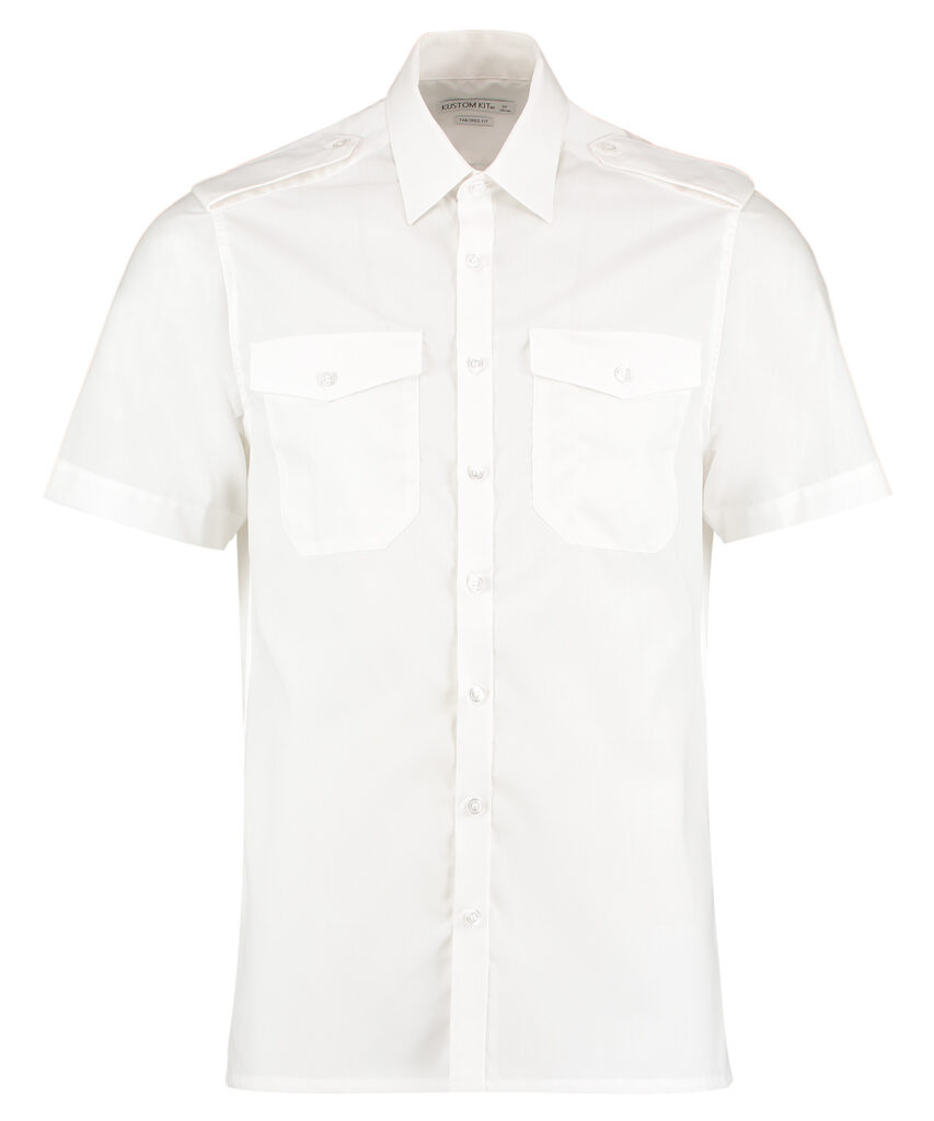 Fused stand-up collar. Easy iron. Doubled-stitched side and sleeve seams. Two chest pockets with button down flaps. Pen holder left side pocket as worn. Button down epaulettes to shoulders. Single needle stitched yoke and armholes. Single-stitched straight hem and cuffs. Kustom Kit woven back neck label. SEDEX certified. Oeko-Tex certified.