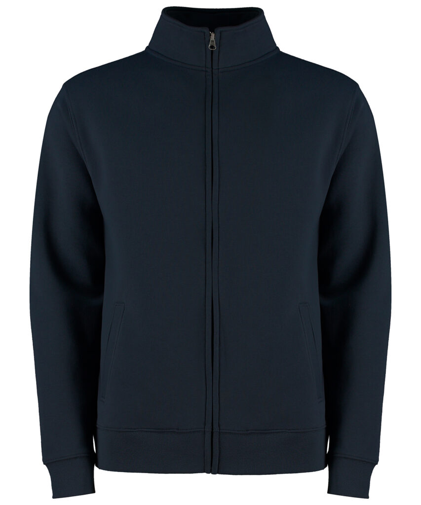Double layered cadet collar. Self-fabric full needle rib double layered cuff and welt. Binding to back neck. Taped shoulder seams. Double stitched shoulders and armholes. Zirconium coloured metal zip and puller. Taped zip reverse. Double stitched welted side pockets with self-fabric pocket bags. Kustom Kit tear-out back neck label. SEDEX certified. Oeko-Tex certified.