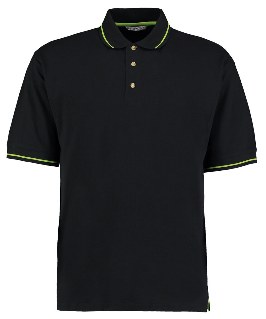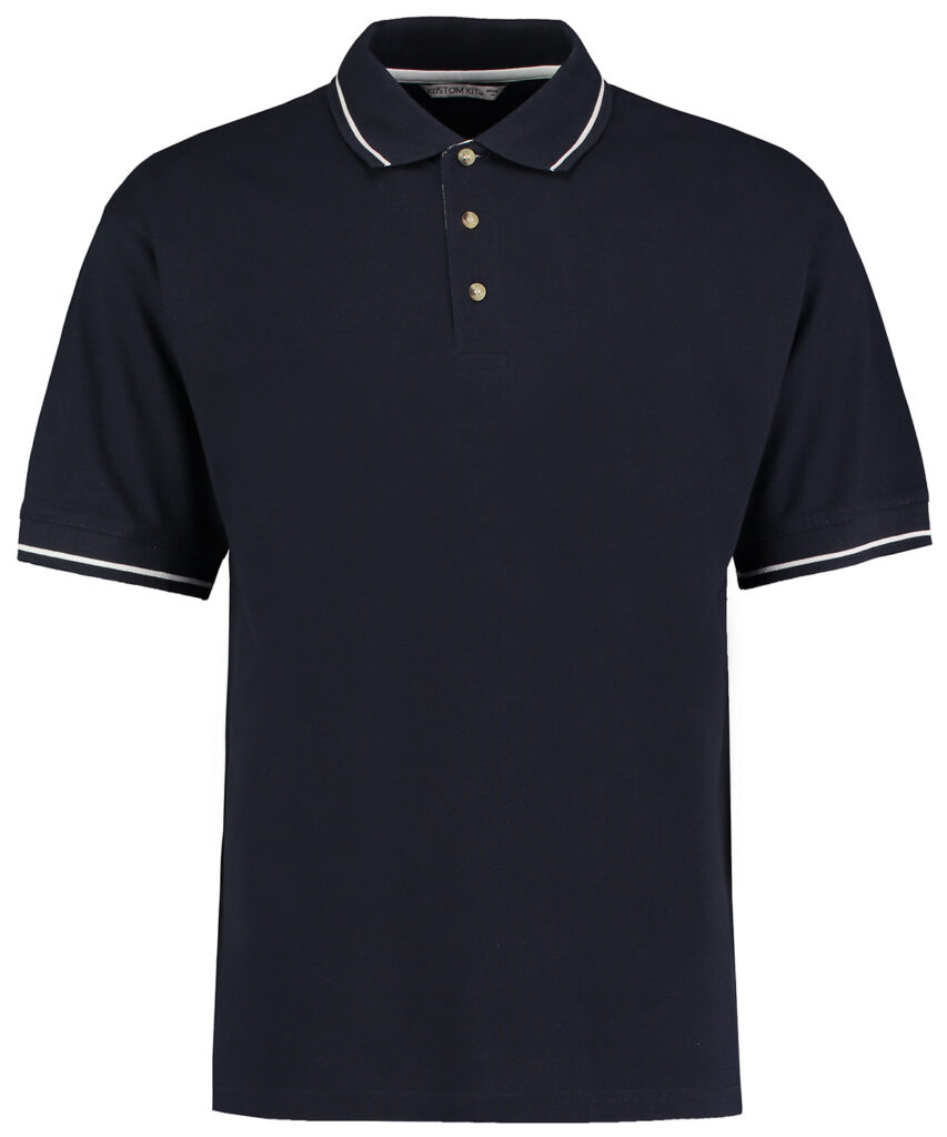 Contrast stripe 1×1 rib flat knit collar and cuffs. Contrast three-button slanted top placket. Contrast back neck tape. Half moon yoke on back. Taped shoulder seams. Contrast herringbone taped side vents. Double-stitched shoulders, armholes and cuffs. Twin-needle hem. Spare button. Kustom Kit woven back neck label.Please note this garment is a generous fit. WRAP certified. SEDEX certified. Oeko-Tex certified. BSCI certified.