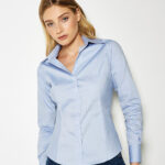 The womens long sleeve Oxford is a staple garment within the corporate collection. Its timeless design offers a smart and consistent style across the team.