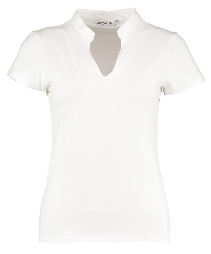 Stand-up mandarin collar. Self fabric fused facing around v-neck. Self fabric taped shoulder seams. Twin-needle hem and cuffs. Kustom Kit woven back neck label. WRAP certified. SEDEX certified. Oeko-Tex certified. BSCI certified.