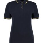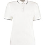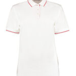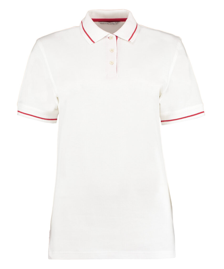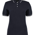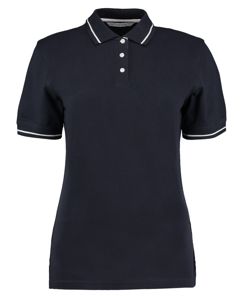 Contrast stripe 1×1 rib flat knit collar and cuffs. Contrast three-button slanted top placket. Contrast taped back neck. Half moon yoke on back. Taped shoulder seams. Contrast herringbone taped side vents. Double-stitched shoulders, armholes and cuffs. Twin-needle hem. Spare button. Kustom Kit woven back neck label. WRAP certified. SEDEX certified. Oeko-Tex certified. BSCI certified.