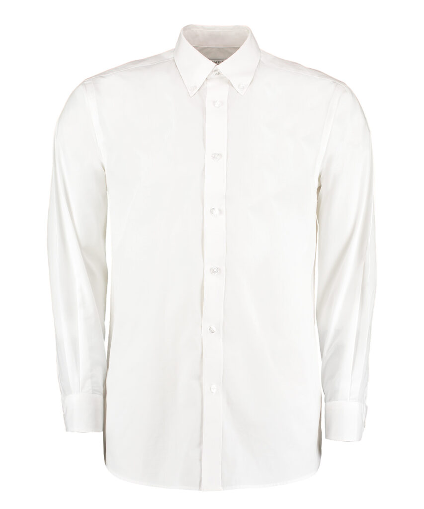 Fused stand-up button down collar. Two pleats at the back. Rounded hem. Optional chest pocket. Single-stitched yoke and armhole seams. Double-stitched side and sleeve seams. One button adjustable cuff. Spare buttons. Kustom Kit woven back neck label. SEDEX certified. Oeko-Tex certified.