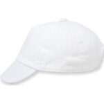 Cotton twill cap. Double front panel for easy decoration. Age 6-12 months, has a soft peak. BSCI certified. Oeko-Tex certified. SEDEX certified. WRAP certified.