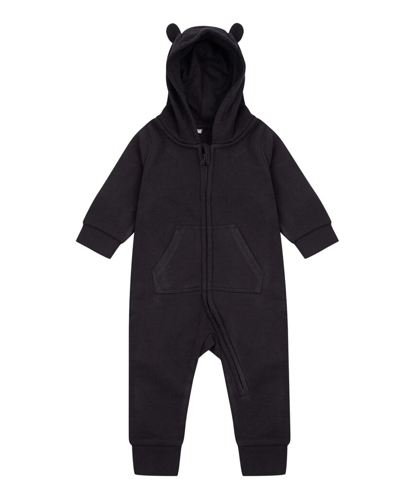 The cosy fleece all-in-one has cute ear hood details, a kangaroo pocket and YKK zip feature. The product is tag-free allowing freedom for decoration and embellishment, with bright colours available.