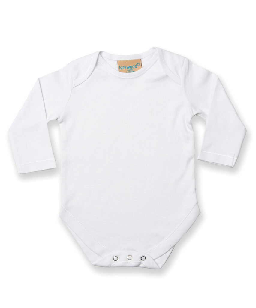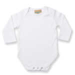The long-sleeved baby bodysuit has been designed using the finest of fabrics and left blank for print and embroidery opportunities. The bodysuit conveniently features a YKK bottom popper fastening and is available in cheerful colours.
