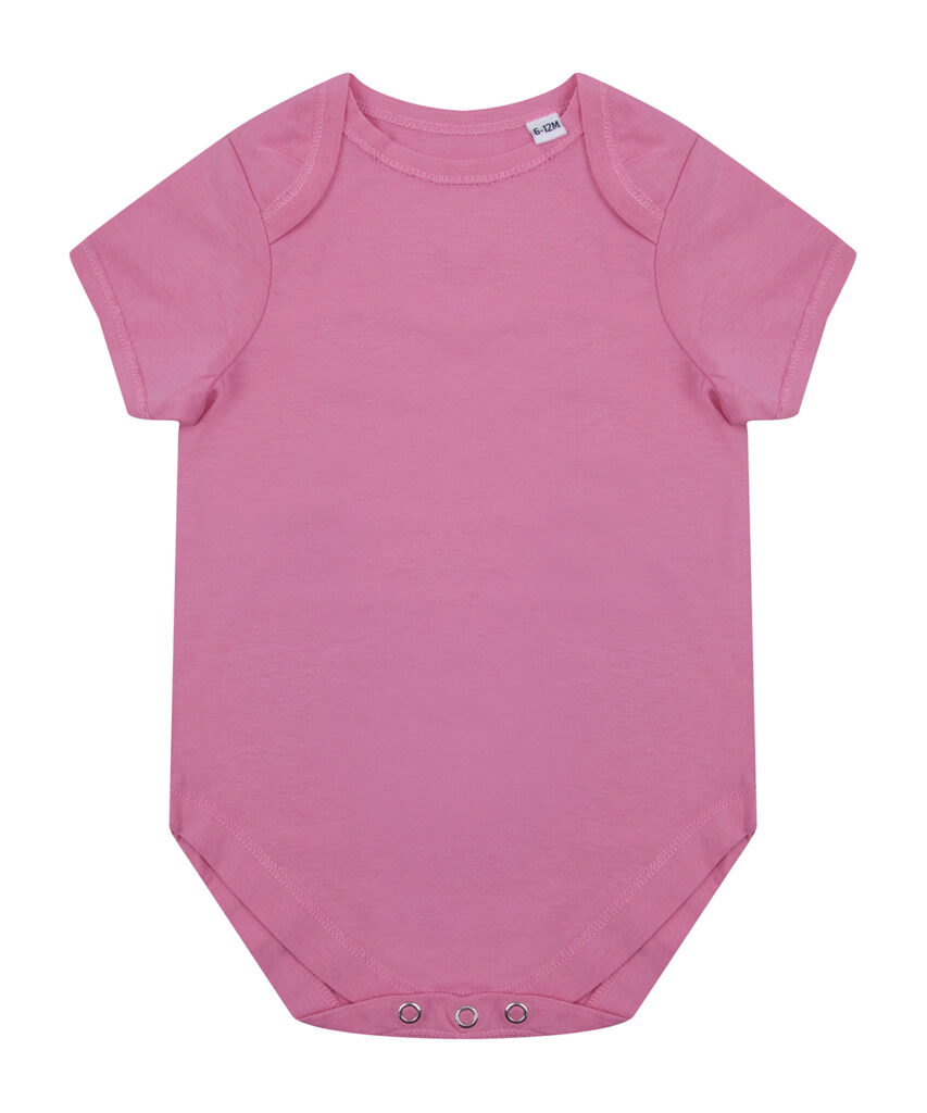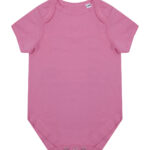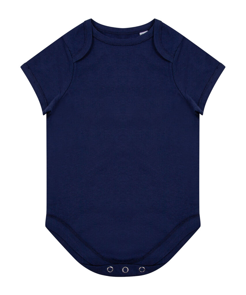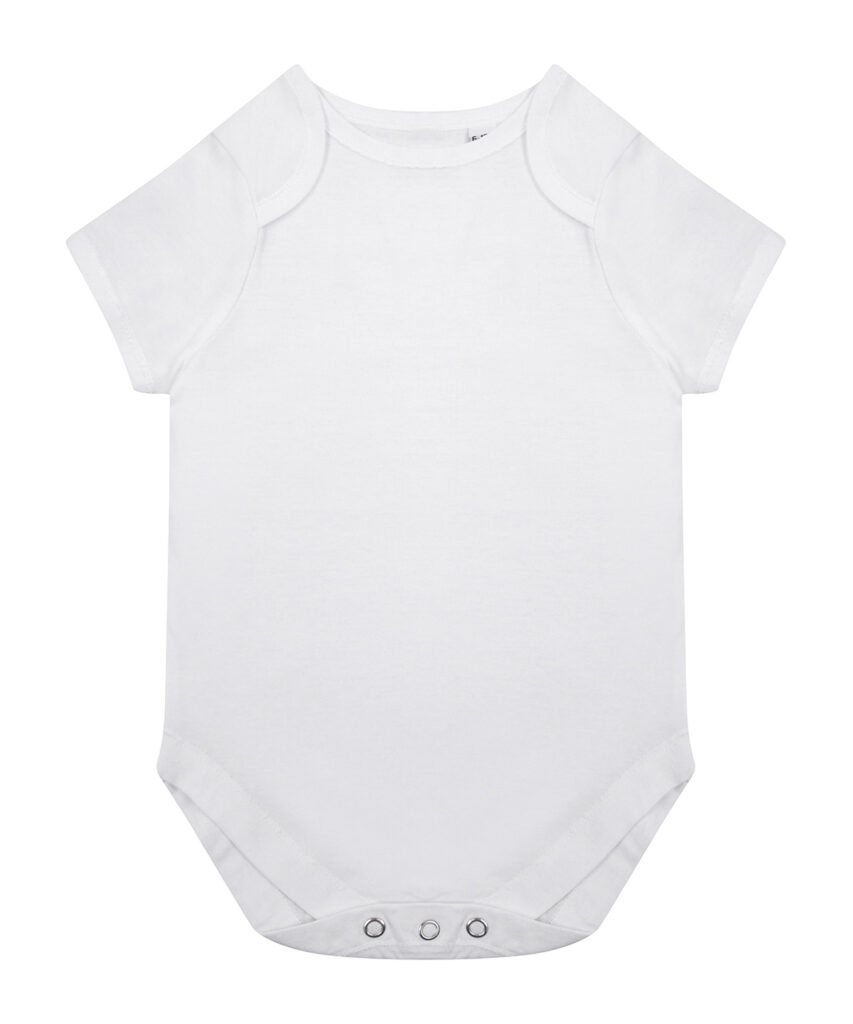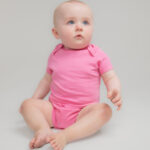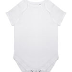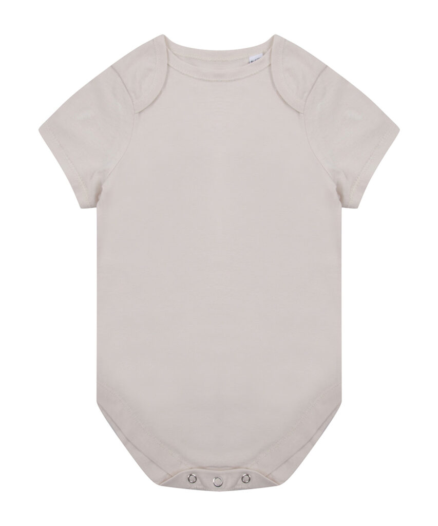 Making a change, this super-soft organic cotton bodysuit has YKK popper fastening on the gusset with self-coloured binding around the envelope neckline.