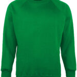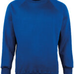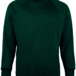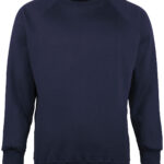 Easycare crew neck raglan sleeve sweatshirt with coverseam finish around neck, welt and raglan. Herringbone taped neck. Woven label.