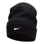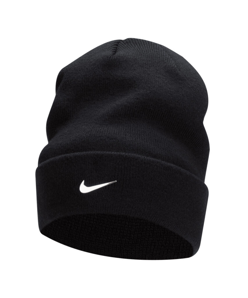 Nike Peak is a mid-depth classic beanie thats versatile for your everyday needs. Soft knit yarns feel warm and snug on your head. Metal Swoosh design on cuff.