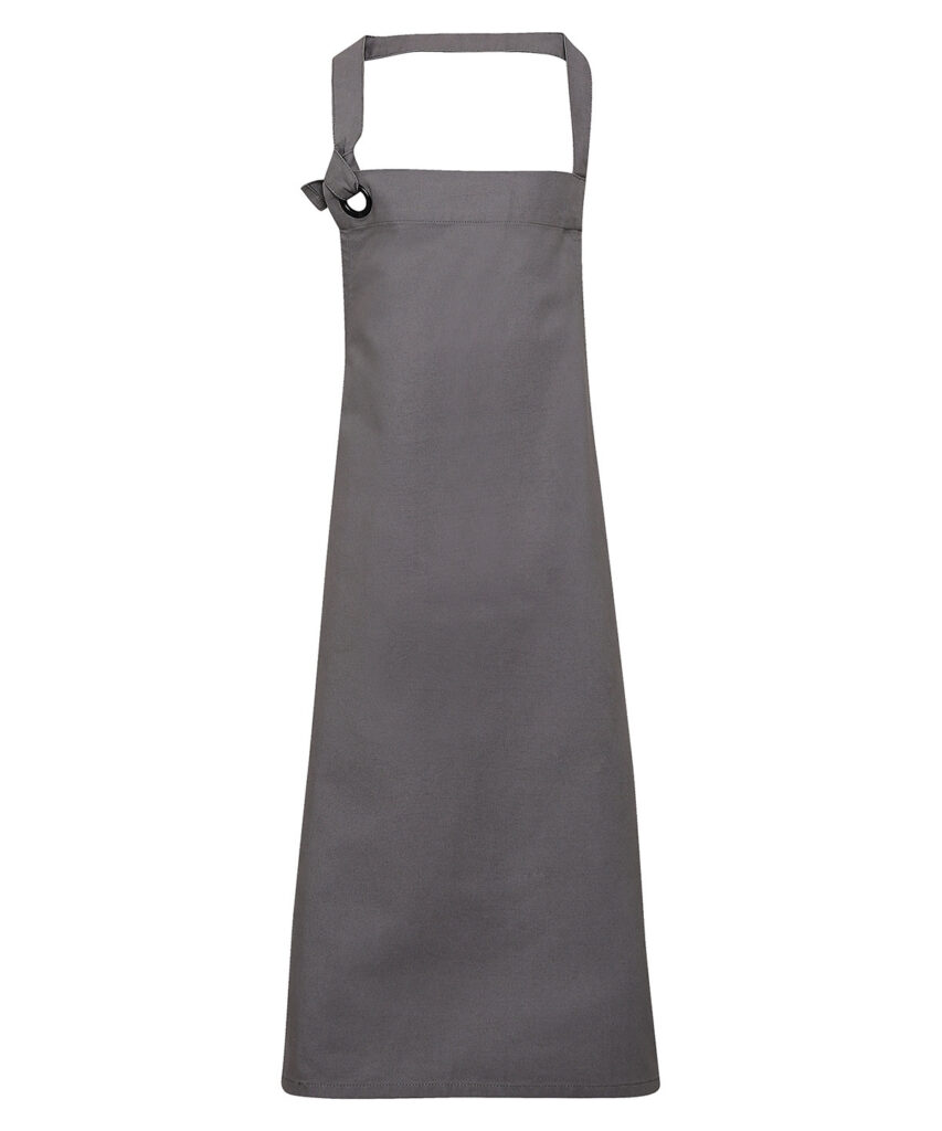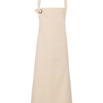 A full bib apron made from heavy cotton canvas fabric for a soft hand feel. Self fabric strap is sewn to the main body of the apron on one side and the wearer ties a knot around the large metal eyelet on the other side to form the neckband. Measuring 86cm long and 72cm wide. WRAP certified. Oeko-Tex certified. BSCI certified. Reach certified. SEDEX certified.