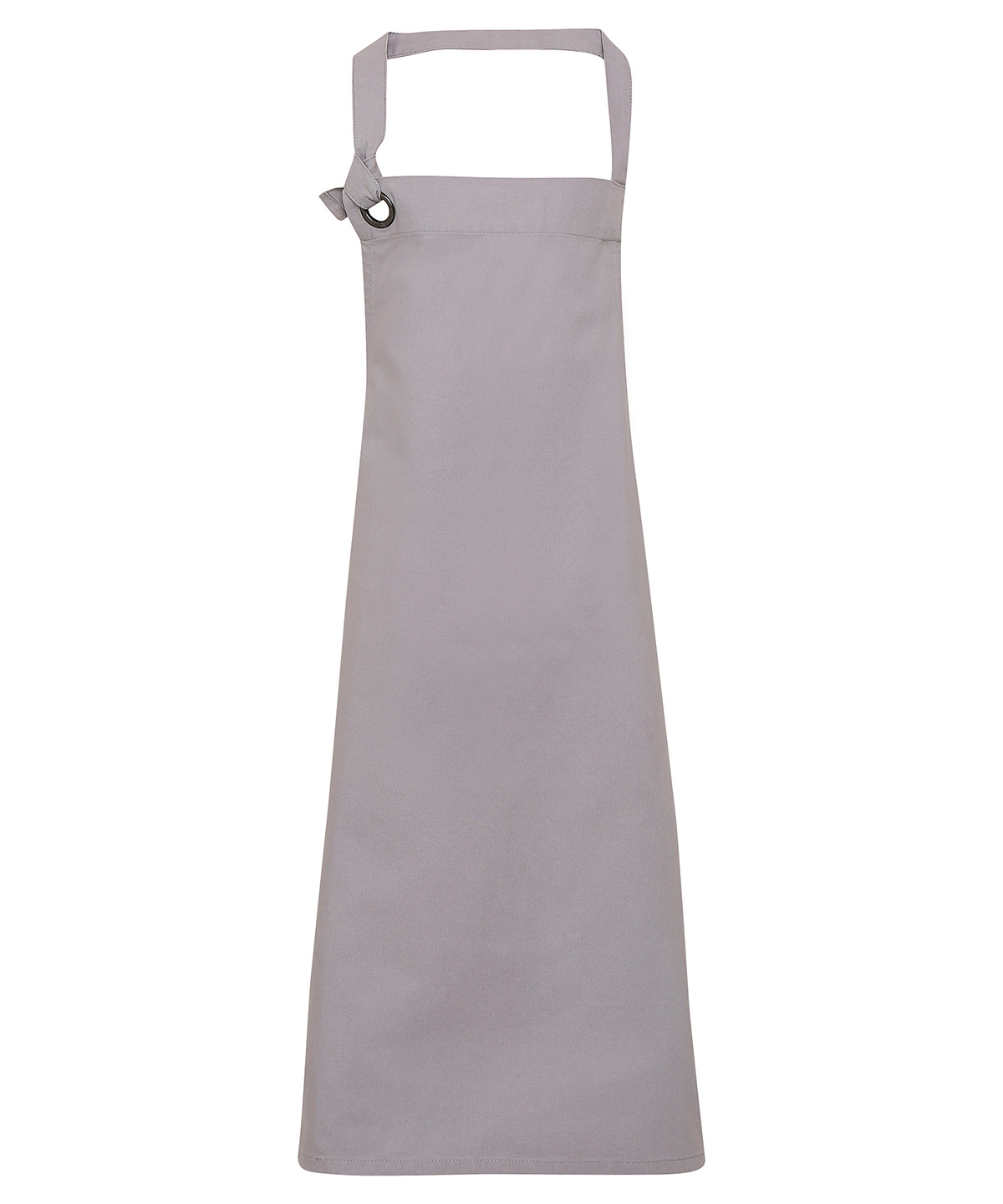 A full bib apron made from heavy cotton canvas fabric for a soft hand feel. Self fabric strap is sewn to the main body of the apron on one side and the wearer ties a knot around the large metal eyelet on the other side to form the neckband. Measuring 86cm long and 72cm wide. WRAP certified. Oeko-Tex certified. BSCI certified. Reach certified. SEDEX certified.