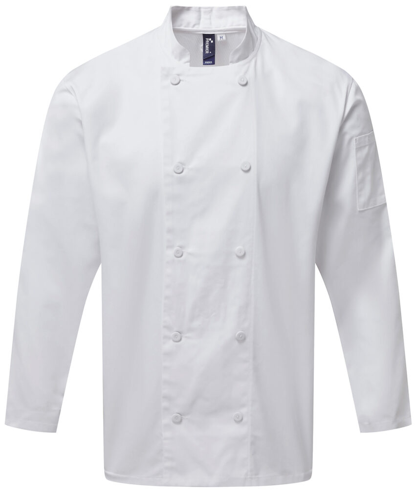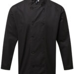 A long sleeve chef’s jacket constructed with Coolchecker fabric. The centre back panel is made from the Coolchecker fabric which offers exceptional moisture management and wicking properties so chef stays fresh and cool during service. A wrap over fastening with ten self-fabric buttons, a mandarin collar and a useful double pen pocket on the left arm.