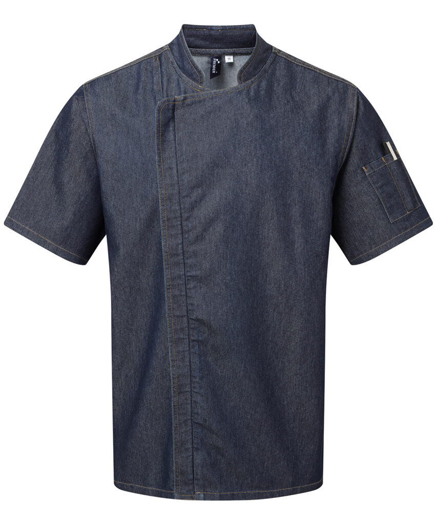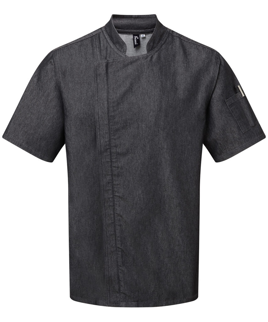 An easy-wearing pull-on chefs jacket with a concealed zip-through fastening. The two denim styles have reverse coloured panels under the arm and down the sides with the White version benefits from an under-arm breathable mesh panel. Styled with a mandarin collar and side vents for a typical style seen in many kitchen environments.