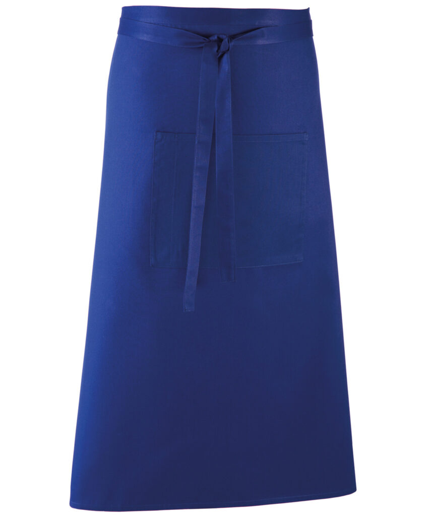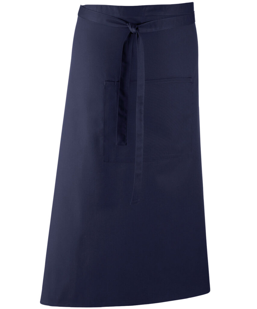 A bar apron that falls to a length of 80cm offering the wearer maximum coverage. This apron comes in 24 colours and is part of the ‘Colours Collection’ from Premier. To the centre of the apron is a useful centre pocket for carrying tablet devices, together with a combined pen compartment.