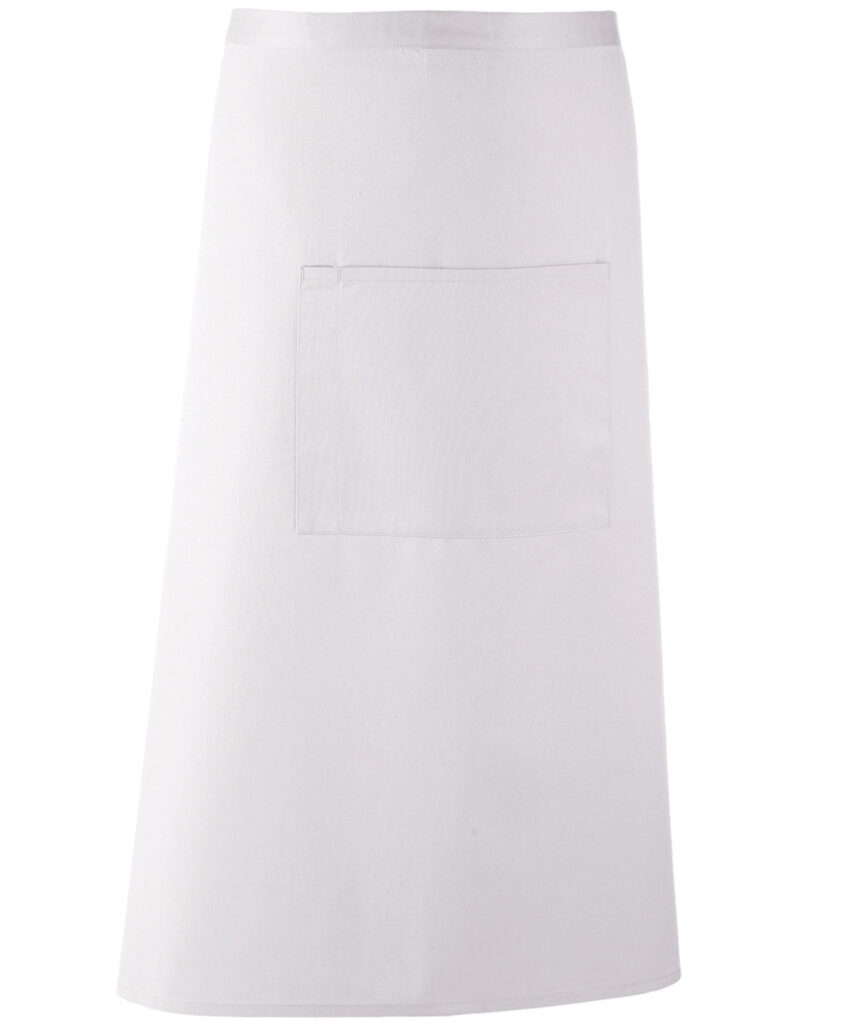 A bar apron that falls to a length of 80cm offering the wearer maximum coverage. This apron comes in 24 colours and is part of the ‘Colours’ collection from Premier. To the centre of the apron is a useful centre pocket for carrying tablet devices, together with a combined pen compartment. Oeko-Tex certified. BSCI certified. Reach certified.