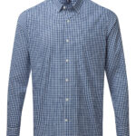 Yarn dyed fabric creating a gingham pattern. Long sleeve with single button cuff and sleeve guard. Narrow soft collar with button-down options on the underside. Semi fitted. Easycare fabric. WRAP certified. Reach certified. BSCI certified. SEDEX certified.