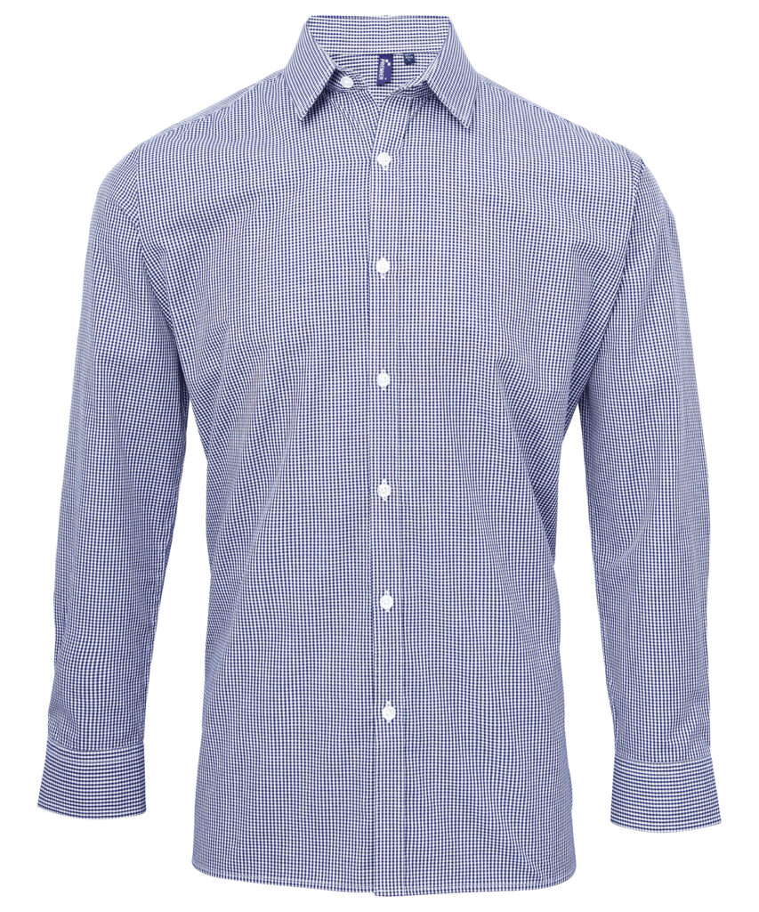 Long sleeve fitted shirt with soft collar styling. Double buttoned cuffs. Gingham pattern. Back yoke. WRAP certified. BSCI certified. Reach certified. SEDEX certified.