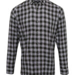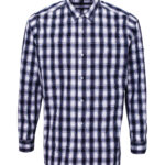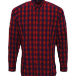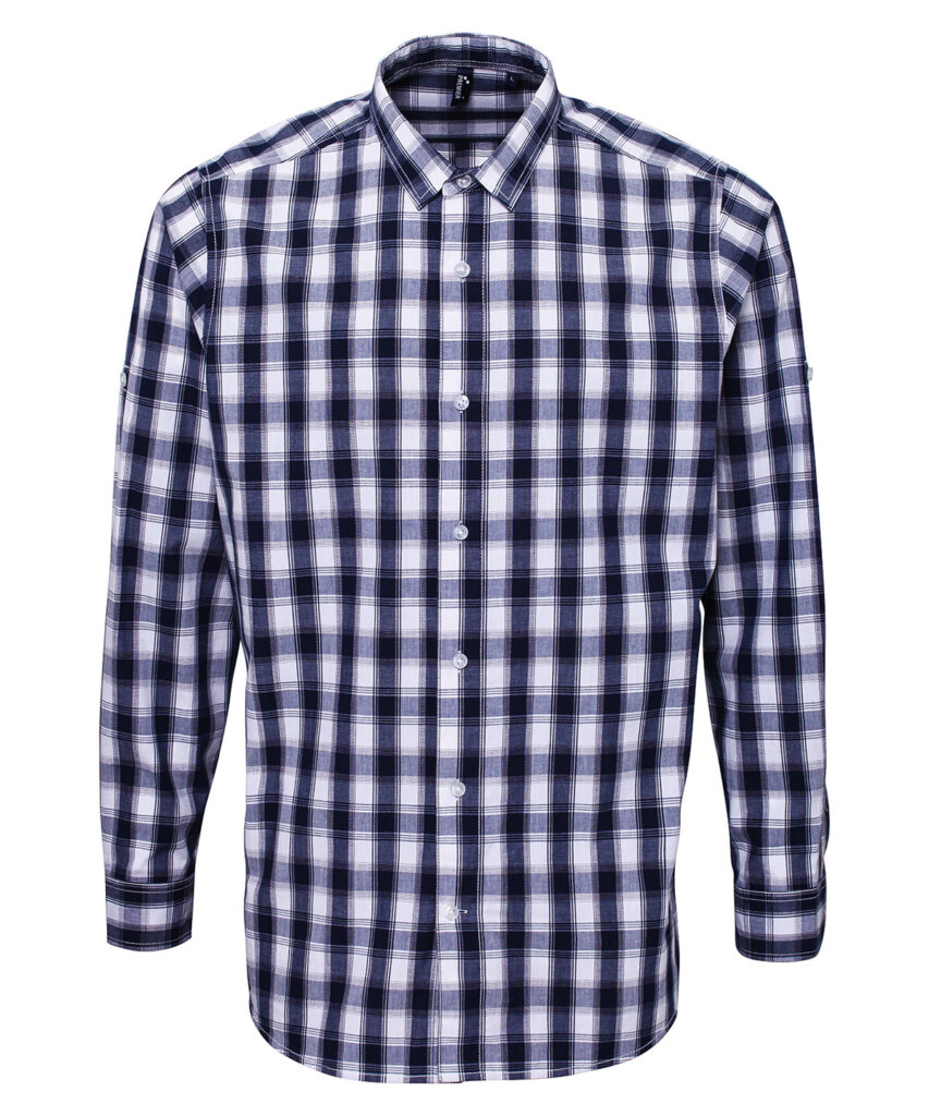 Long sleeve semi-fitted shirt for men with a multi-coloured contrast check pattern. Single button cuff and sleeve guard which is designed to be rolled up and secured in place with a button and tab on the upper arm. Soft collar styling with curved hem. WRAP certified. BSCI certified. Reach certified. SEDEX certified.