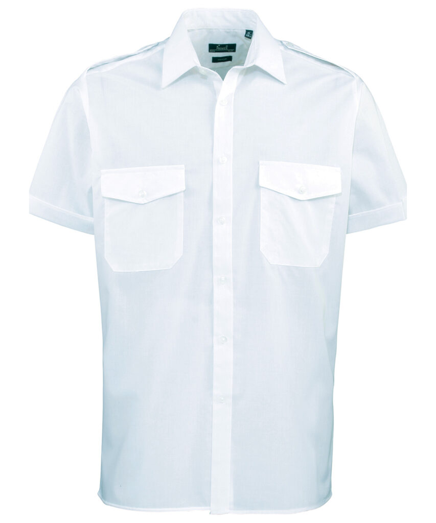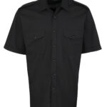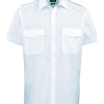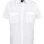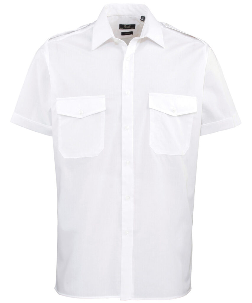 A men’s short sleeved pilot/security shirt with a stiffened collar and tabs for epaulettes on shoulders for those who need a more authoritative approach to their workwear.