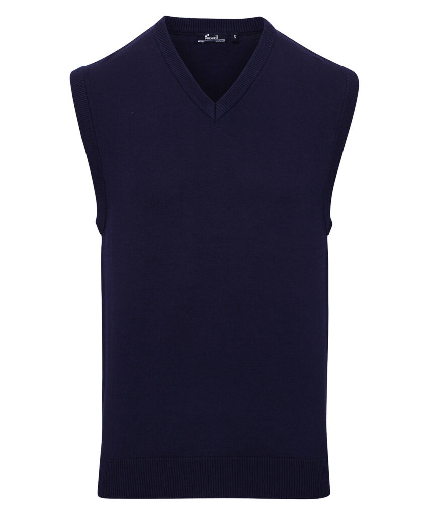 Cotton rich with a fine 12 gauge knit. Sleeveless with ribbed detail on the arm holes, v-neckline and hem. WRAP certified. BSCI certified. Reach certified.