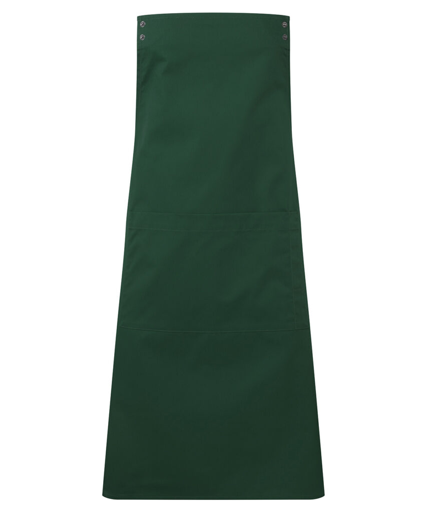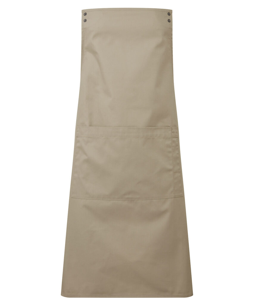 Apron body with straps sold separately for ultimate customisation (for straps, see PR191). Mix and match colours, without the need for a bespoke option. 200 colour combinations to choose from. Simply choose your apron body, then select contrasting neckband and waist ties. Straps fasten securely to this apron body using strong, self-coloured, snap-action press studs. Centre pocket with combined pen pocket. Self-fabric cloth holder. Sedex and Global Recycled Standard certified.