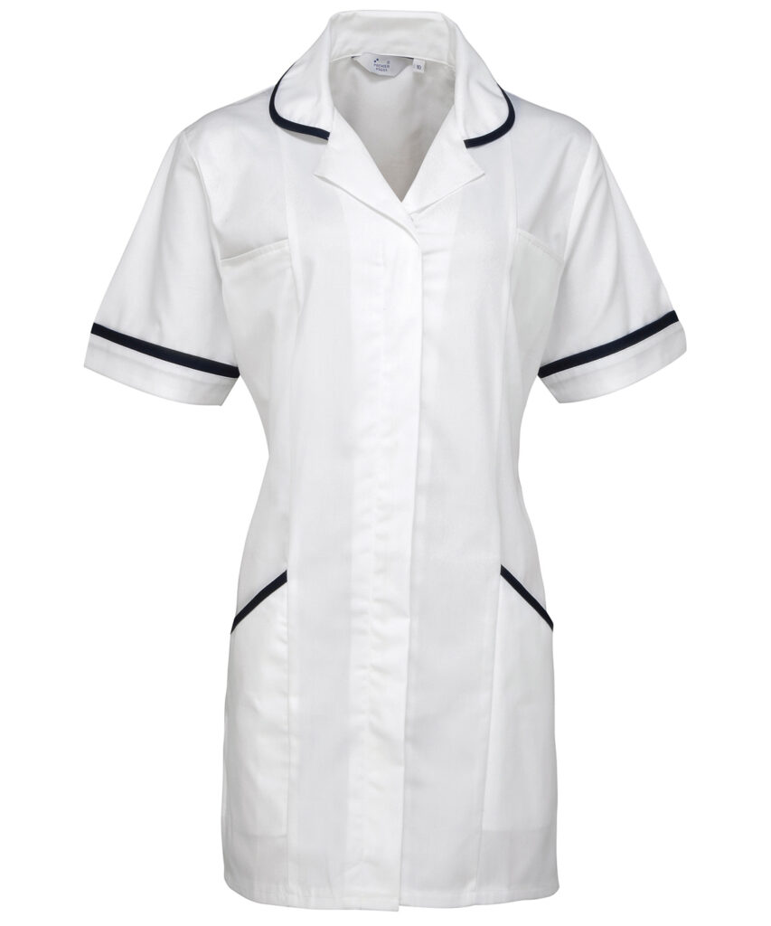 Premiers Vitality healthcare tunic features a contrast trim to the collar, cuffs and pocket making for a stylish choice for those working in the caring profession. The side and back pleats provide a flattering, fitted style whilst the curved side pockets and PU lined pen pockets make this a practical tunic for healthcare environments.