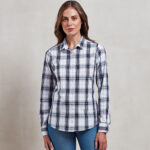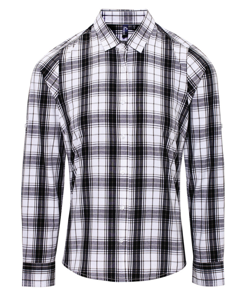 A women’s long sleeve semi-fitted shirt with attractive check pattern. Single button cuff and sleeve guard which is designed to be rolled up and secured in place with a button and tab on the upper arm. Soft collar styling with curved hem. WRAP certified. BSCI certified. Reach certified. SEDEX certified.