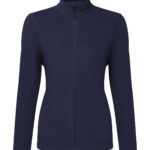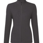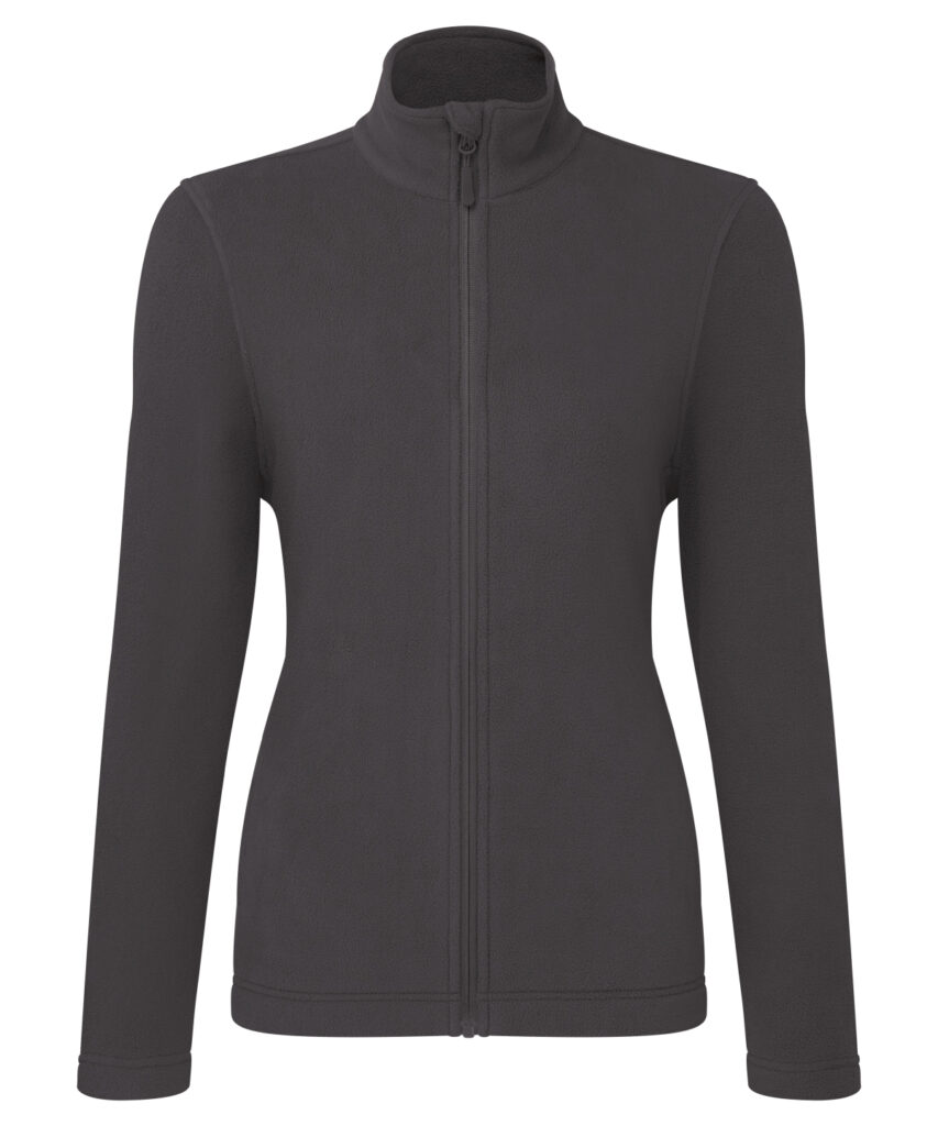 Womens full-zip microfleece. Anti-pill fabric prevents bobbling. Self-coloured zip pull. Chin guard and storm flap. Cadet collar. Side panels. Side seamed open pockets. Straight finished hem. Made from 100% recycled polyester. Amfori BSCI certified.