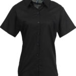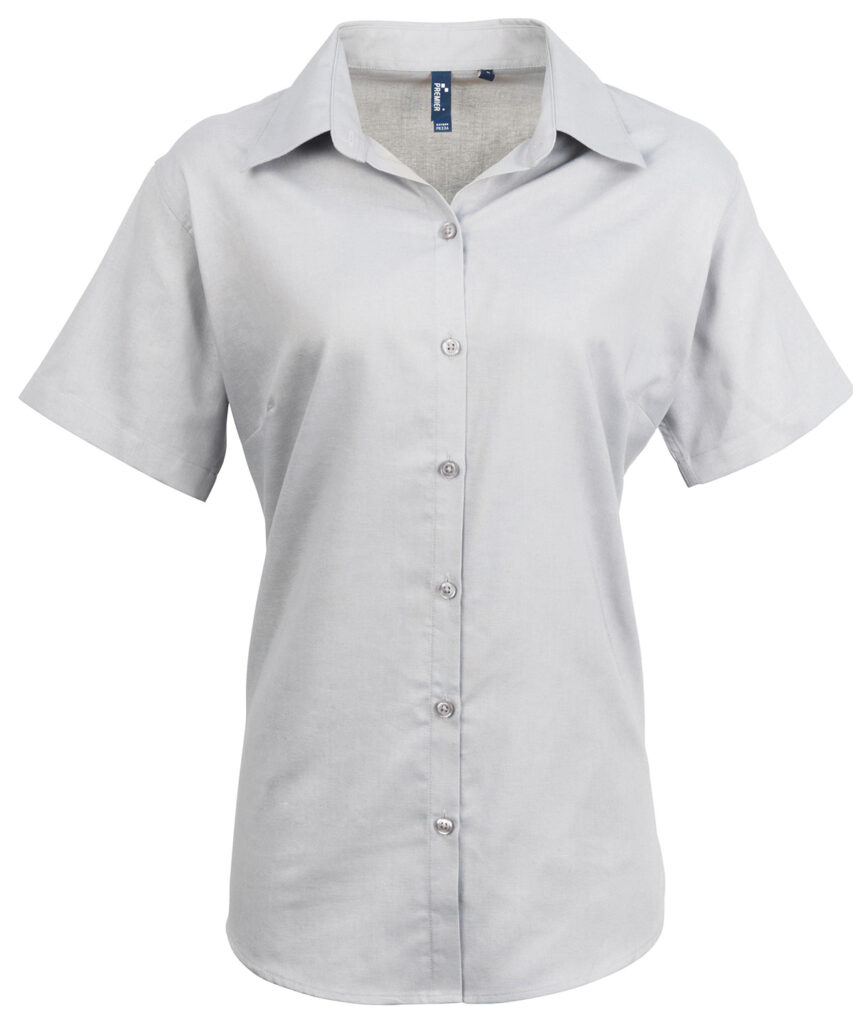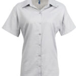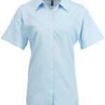 This short sleeve ladies Oxford blouse is an essential wardrobe item during the warmer months. Bust and back darts make for a flattering fit and the soft collar styling and rounded bottom hem ensure a feminine workwear blouse for women.