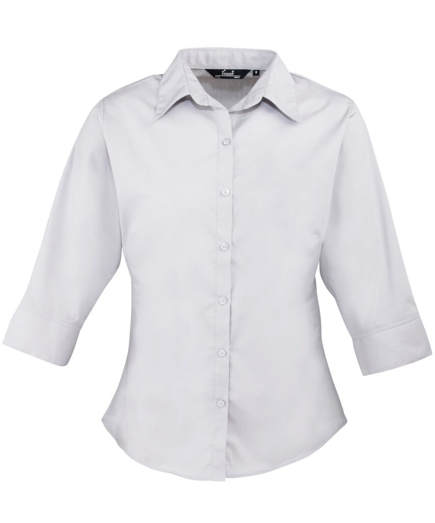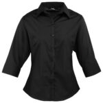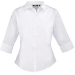 A semi fitted blouse for women that offers the wearer a fashionable three-quarter length sleeve. The sleeve is finished off with a neat vented cuff and the bust and back area offers a flattering cuts that gives the blouse its fitted appearance.