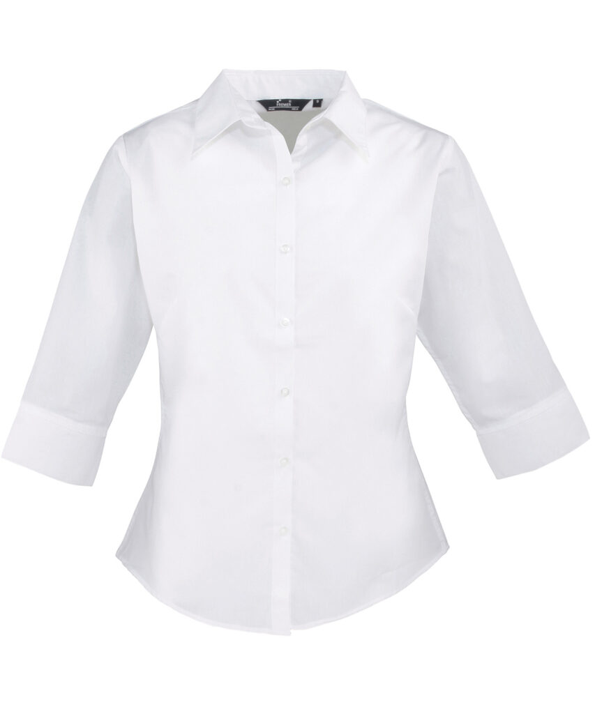 Soft collar styling, rounded bottom hem. Fitted styling with bust darts and back darts. Easy-care fabric. Pearlised buttons on light blue and white. Self coloured buttons on remaining colours. WRAP certified. BSCI certified. Reach certified. SEDEX certified.