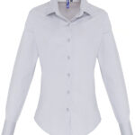 Cotton combined with elastane makes for a super soft, stretchy and comfortable fitted shirt for ladies. Double buttons on the cuff, together with a single button sleeve guard allows for a either a formal arm or a more casual roll back option. Styled with a soft cut-away collar with top button- which again, can be worn formally with a scarf or open collared for a more relaxed look. WRAP certified. BSCI certified. Reach certified. SEDEX certified.