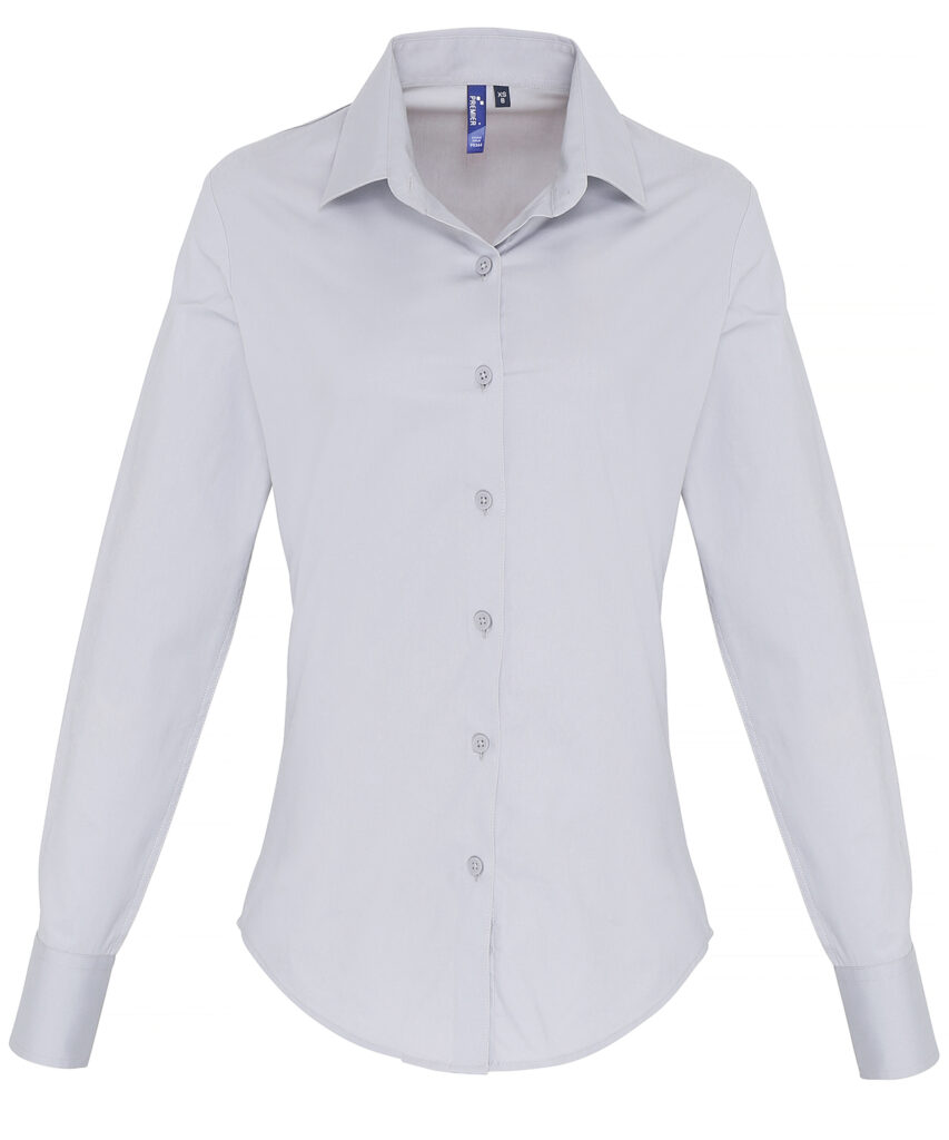 Cotton combined with elastane makes for a super soft, stretchy and comfortable fitted shirt for ladies.