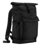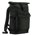 Contains 100% GRS certified recycled polyester, certified by Control Union CU811033. Rear padded laptop compartment, compatible up to 16″. Front slip pocket with magnetic closure flap. Easy-access side pockets. Zipped front pocket. PU zip pulls. Roll-top closure. Rear luggage strap. Padded, adjustable shoulder straps. TearAway label for ease of rebranding.