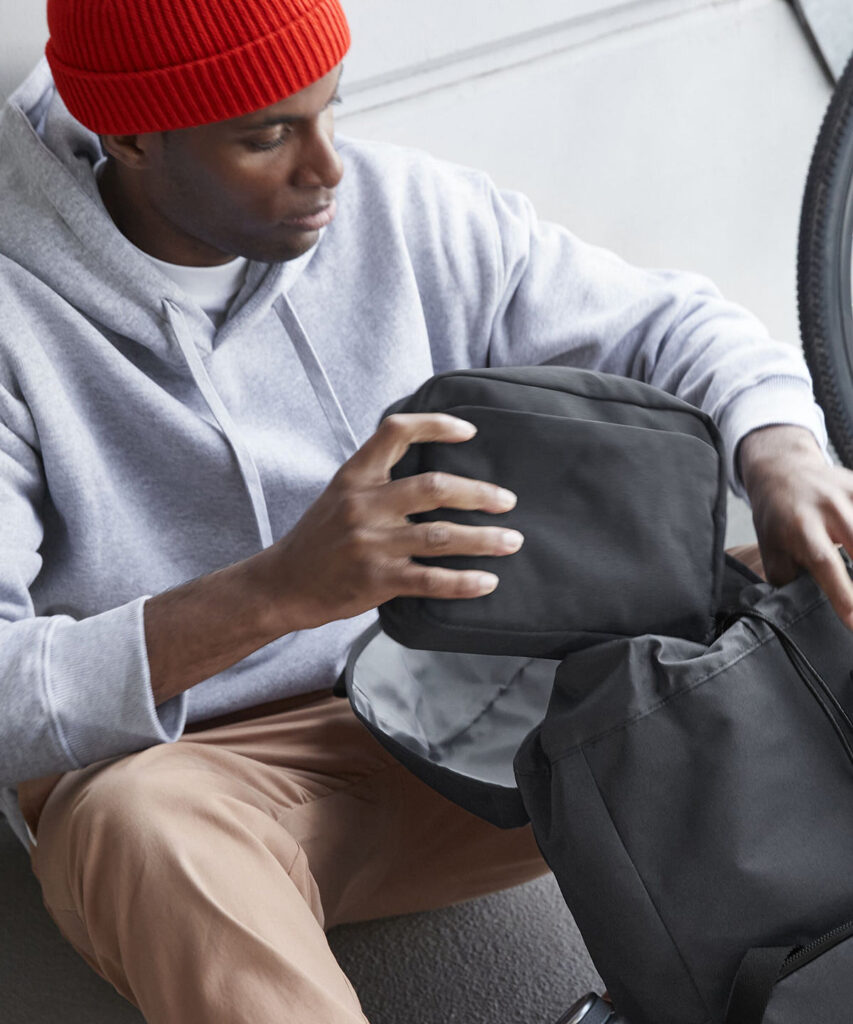 Contains 100% GRS certified recycled polyester, certified by Control Union CU811033. Water-repellent fabric. Zipped front pocket. Internal zipped pocket. Two internal slip pockets. Internal mesh pockets. PU, self-coloured zip pulls. TearAway label for ease of rebranding.