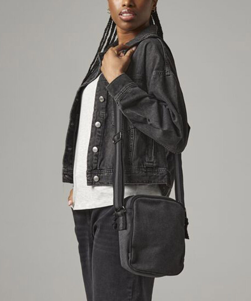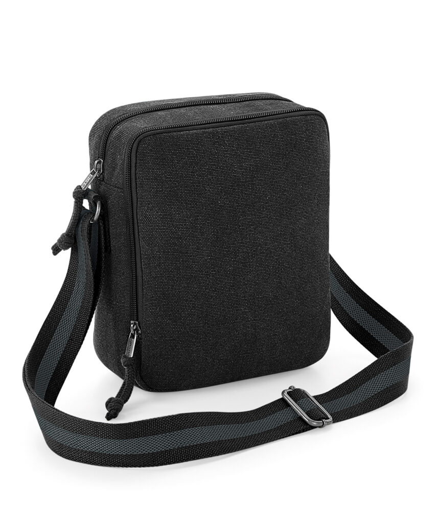 TearAway label for ease of rebranding. Front pocket designed for easy decoration. Zippered main compartment. Two-tone webbing strap. Adjustable shoulder strap. BSCI certified. Reach certified.