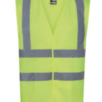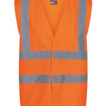100% polyester tricot mesh fabric. Conforms to EN ISO 20471:2013 +A1:2016 Class 2 (orange also RIS-3279/TOM). Hook and loop fastening.
