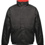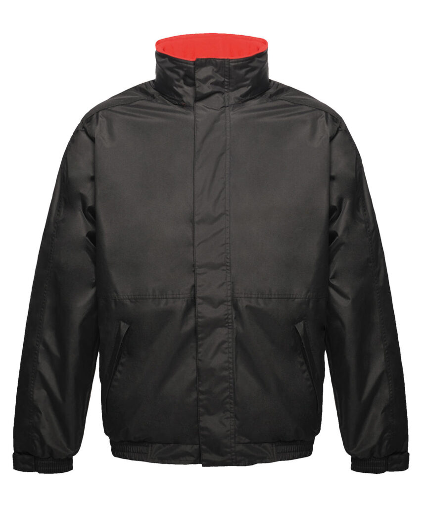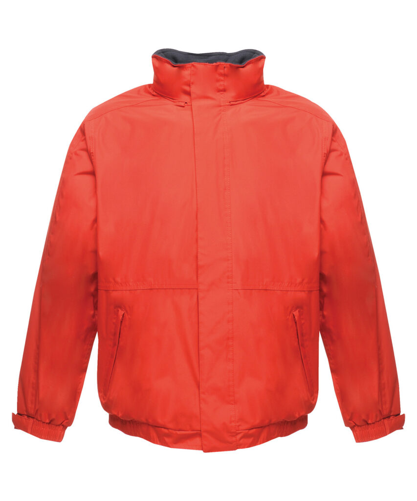 Waterproof Hydrafort polyester fabric. Windproof fabric. Anti-pill symmetry fleece reverse with taped seams. Concealed hood. Studded stormflap and elasticated cuffs. 2 zipped lower pockets with press studs at hem for embroidery access.