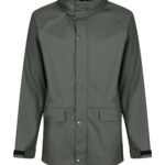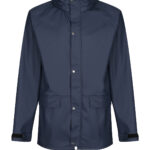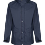 Highly breathable waterproof and windproof PU-coated fabric. Comfortable and lightweight tricot knit backing. Packaway hood with adjusters and studded stormflap. Adjustable cuffs and hem. Reach certified. Ethical Trading Initiative certified.