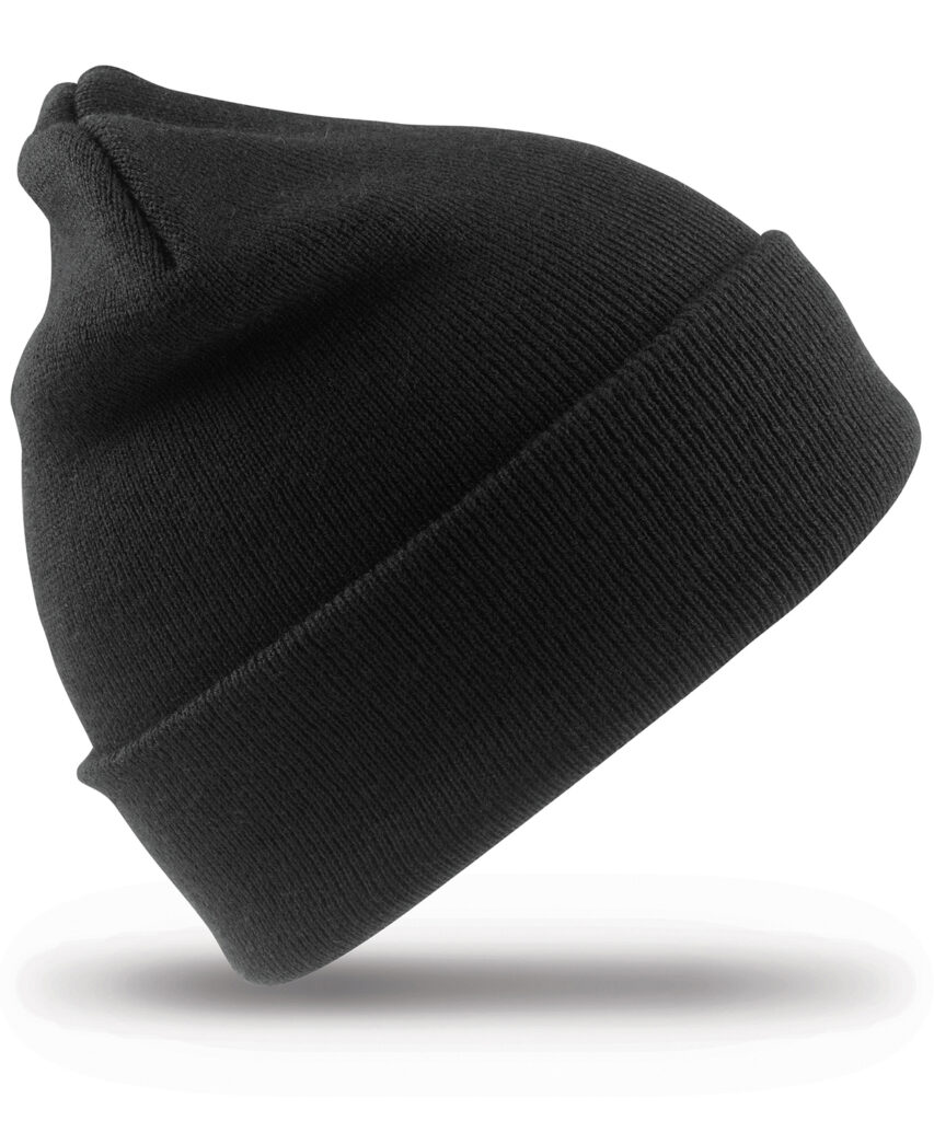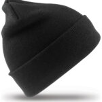 Beanie made from 50% recycled materials with Thinsulate. 3M label sewn outside. Double thickness. Full size style. Deep Cuff. Soft-feel knit. .