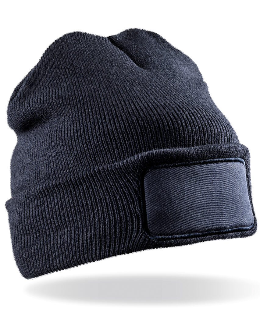 Printers Beanie made from 50% recycled materials with Thinsulate. 3M label sewn inside. Cotton Twill Patch for printers. Double thickness. Full size style. Deep Cuff. Soft-feel knit. .